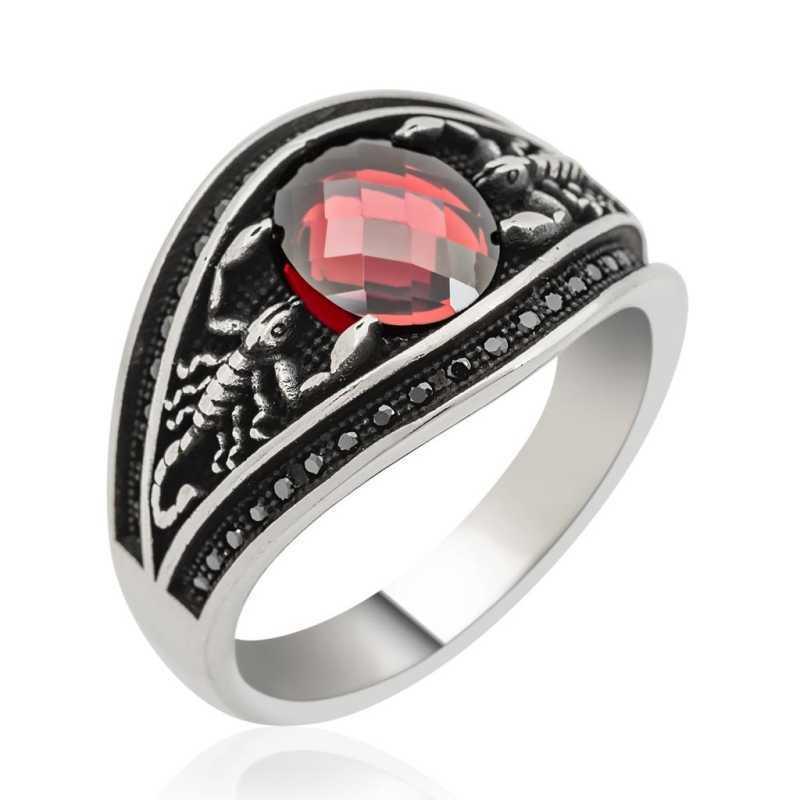 Known for its strong body and deadly sting, the scorpion informs of future dangers or difficult transformations. Since it is the zodiac sign, it is also highly preferred in accessories. It is known as a symbol of power due to the poison it contains, and is also known for its stubborn and unyielding nature. You can choose this stylish ring as a gift for yourself or your loved ones on birthdays, Father's Day or special days. The scorpion ring is made of 925 sterling silver. Oxide coating is applied to silver. Oxide-coated rings preserve their shine for a long time. The red stone on the ring is zircon. As with all men's rings, the silver scorpion men's ring is also handmade. There may be ± 10% deviation in the weight of the product due to silver and precious stones.
