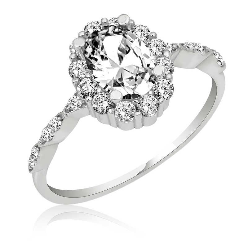 Silver White Oval Stone Women's Ring