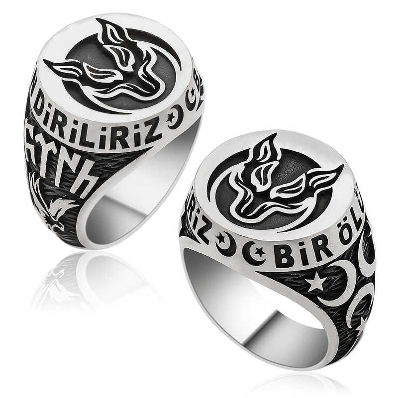 This symbol is a victory sign that means success by Turkish rulers. It expresses power, loyalty, dominance and happiness. Alparslan Türkeş explains the meaning of the grey wolf sign with the following words: “The little finger is Turkish, and that index finger is Islam. The space between the grey wolf sign and the sign we made is the world. Finally, the point where the remaining 3 fingers meet is the seal. We will put the Turkish Islamic Seal on the World…” he said. You can enjoy using the ring with the grey wolf head and the inscription “We die one thousand times and rise one day” and gift it to your loved ones. It is made of 925 sterling silver. Oxidized silver is coated on silver. Products with oxide coating take on an aged color. The silver grey wolf one death thousand times and all of our other products are handmade. There may be ± 10% deviation in product weight due to silver and precious stones.