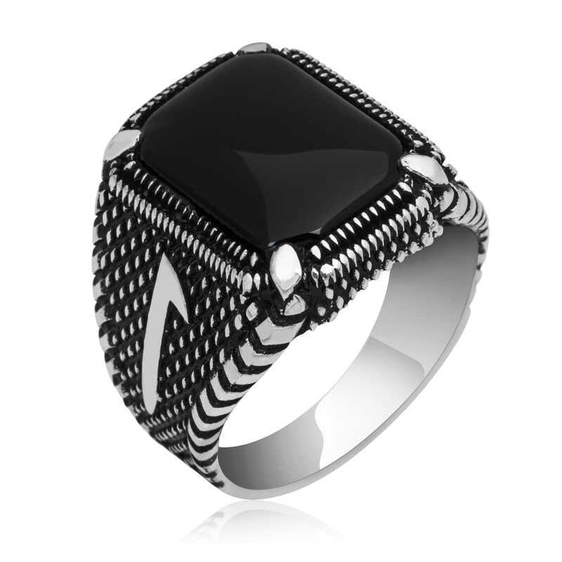 Onyx stone, which has reached the earth over millions of years, is a stone formed by the heating and cooling of rocks and some components over time. Onyx stone is known as the stone of luck and is a semi-precious stone. Onyx has been used in the production of various ornaments and jewelry from ancient times to the present day due to its workability and aesthetically stylish appearance. Onyx stone is the sacred stone of the earth group signs Taurus, Virgo and Capricorn. People with this sign can protect themselves from negative energy by choosing onyx stone accessories. You can gift this stylish ring to yourself or your loved ones on their birthdays, father's day and other special days. This stylish ring is made of 925 sterling silver. Oxidized silver is coated. Oxidized rings gain an authentic look. As with all men's rings, the silver onyx stone men's ring model is also produced by hand. There may be a ± 10% deviation in the specified average product weight due to silver and precious stones.