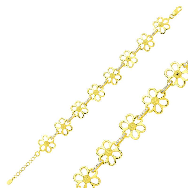 Daisy flower expresses the meaning of pure love. One of its greatest features is that there is one on each stem. This sparkling necklace, which emerged by designing this beauty, is adorned with zircon stones... This stylish bracelet is a perfect option that can be preferred on special occasions as a birthday gift, Valentine's Day gift or a gift for mothers. Yellow daisy women's bracelet; It is made of 925 sterling silver. There is gold plating on this bracelet. Gold-plated products preserve their shine for a long time and give the silver its golden color. As in all our silver women's bracelet models, the silver yellow daisy women's bracelet is also produced by hand. There may be ± 10% deviation in product weight due to silver and precious stones.