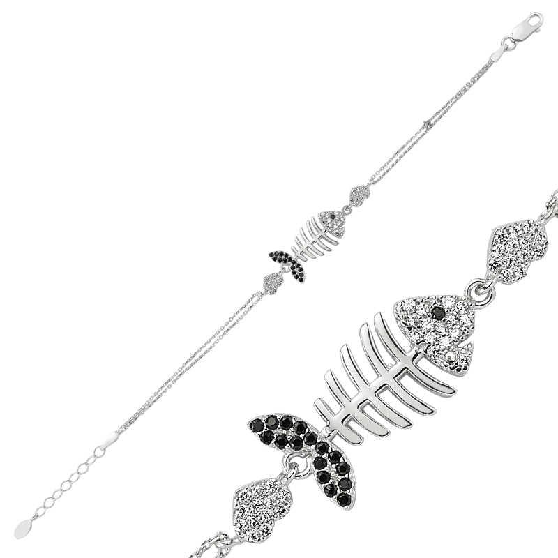 Fish symbolize luck and abundance in many cultures. In addition, fish contain many meanings related to natural life. Swimming against the current, giving birth in large numbers and moving freely... The fish symbol, which has many meanings like this, is before us with its stylish design... The silver heart fish women's bracelet model, which comes across in many colors; It is a perfect option that can be preferred on special days as a birthday gift, Valentine's Day gift or a gift for mothers. The heart fish women's bracelet model is made of 925 sterling silver. Rhodium plating is made on silver. Silver women's bracelets with rhodium plating preserve their shine for a long time and oxidation is delayed. The stones on it are zircon. It adapts to every wrist thickness thanks to the extension chain. All women's bracelet models are handmade. There may be a ± 10% deviation in the specified average product weight due to silver and precious stones.