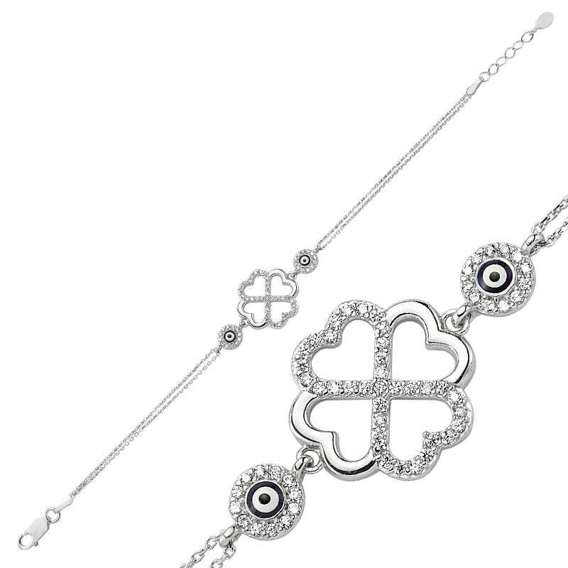 The four-leaf clover is considered a symbol of good luck in all cultures. Each of the four leaves of the clover has a different meaning. The first leaf symbolizes hope, the second faith, the third love, and the fourth leaf luck. The specially designed women's bracelet model consisting of a heart clover is made of 925 sterling silver. This elegant bracelet will be a very stylish option that young lovers can choose on special occasions. There is rhodium plating on the silver heart clover women's bracelet. Silver women's bracelets with rhodium plating maintain their shine for a long time. The silver heart clover women's bracelet will be one of the most beautiful gifts that your loved ones will enjoy wearing as much as you. As with all our silver women's bracelet models, the silver heart clover women's bracelet is also handmade. There may be a ± 10% deviation in the specified product weight due to silver and precious stones.