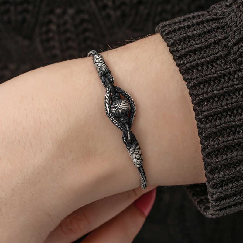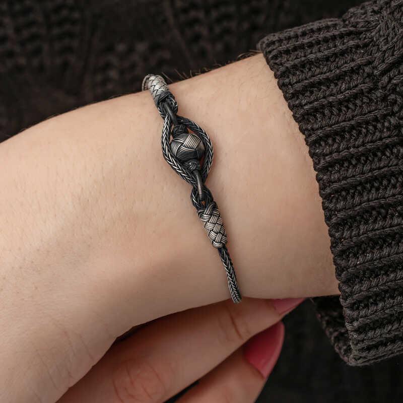 Kazaziye, kazazlık or kazaz; is a handicraft made from pure silver wires using knitting techniques. It is used in prayer beads as well as bracelets and necklaces. Knitted Kazaziye bracelet is completely handmade. Kazaziye knitted bracelet, which appeals to those who want to achieve a stylish look and will never go out of fashion, is waiting for you. Silver knitted Kazaziye bracelet; It is a perfect option that can be preferred as a birthday gift, Valentine's Day gift or special days. Silver bracelet is made of 1000 carat pure silver, 100% handcrafted. Silver is oxidized. There may be a ± 10% deviation in the average product weight due to silver and precious stones.