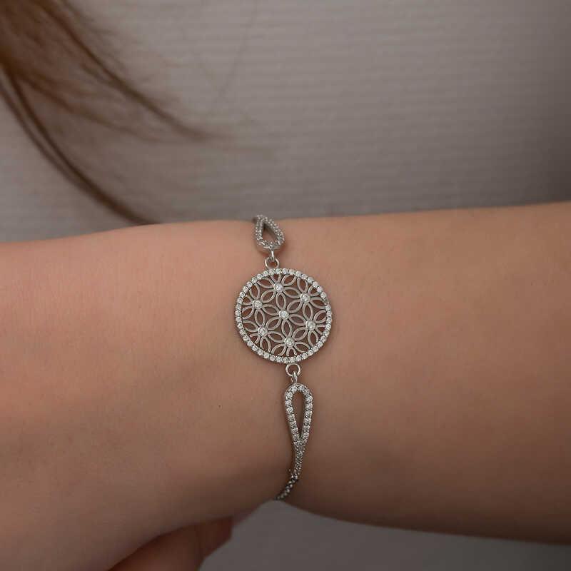 The flower of life describes the creation of humans and all living things in a geometric way. It refers to the existence of a single creator with the symbols it possesses. Indeed, the order of creation of humans and all living things is hidden in the geometric shapes of the flower of life. The focal point of the flower of life, also known as the “language of silence” and the “language of light” in the world, is in its pure form and proportion. The flower of life consists of 20 interlocking circles, and these circles hold the secret of the entire universe. The first 7 circles in the flower of life symbolize that the world was formed in 7 days. The flower of life is associated with sacred geometric shapes, and the flower of life has been used in almost all monotheistic religions. Accessories with the flower of life symbol ensure that people have a more energetic mood and cleanse the soul. You can choose this model, which is loved in every period, as a birthday gift, Valentine's Day gift, or a gift for mothers on special occasions. The silver flower of life bracelet is made of 925 sterling silver. Rhodium plating is applied to the silver. Silver women's bracelets with rhodium plating preserve their shine for a long time, and their oxidation is delayed. The stones on it are zircon. As with all silver women's bracelets, this silver women's bracelet model is also produced entirely by hand. Due to silver and precious stones, there may be a ± 10% deviation in the average product weight specified.