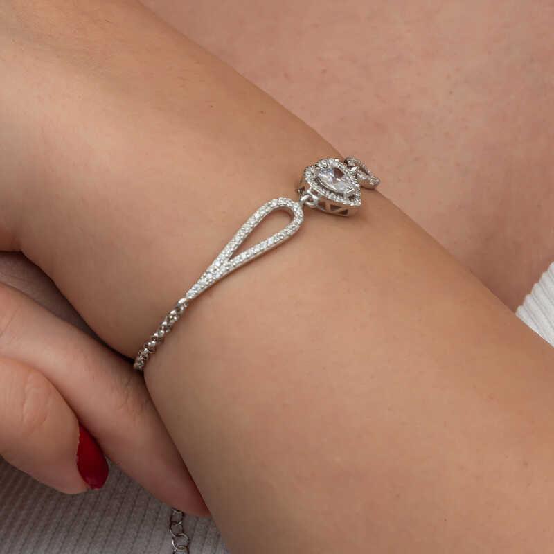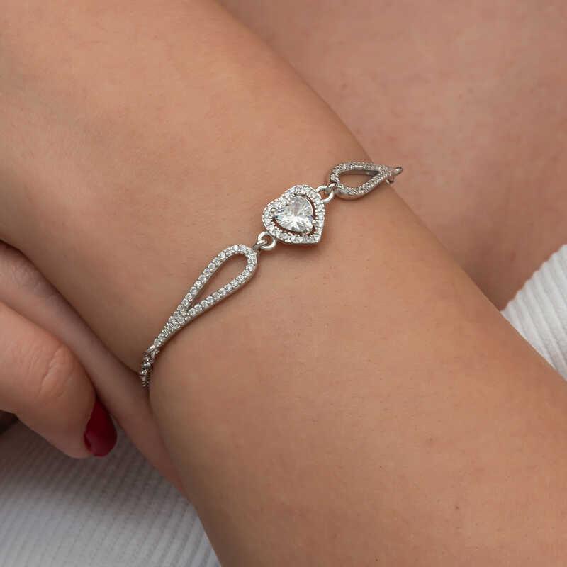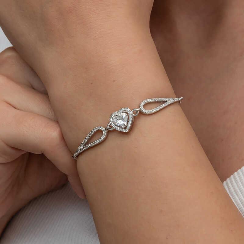 The zircon heart bracelet is a special piece of jewelry that brings together elegance and grace. While the zircon stones make the bracelet more eye-catching with their bright and shiny structure, the heart shape also symbolizes love and commitment. Rhodium plating is applied to the silver. The rhodium-plated heart bracelet preserves its shine for a long time and its oxidation is delayed. As with all women's bracelets, the silver heart women's bracelet is also handmade. There may be a ± 10% deviation in the average product weight specified due to silver and precious stones.