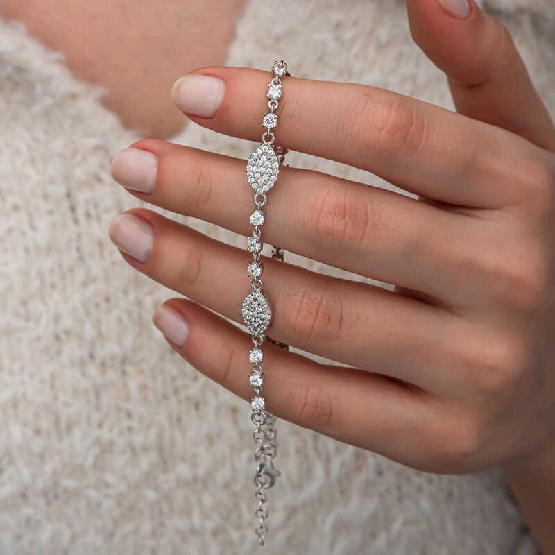Bracelet models offered to you in a wide range from traditional and flashy motifs to simple designs manage to attract the appreciation of women of all styles. You can have bracelet models that will allow you to achieve an elegant and stylish appearance and stand out in every environment suitable for classic or sportswear style. Our bracelet models that you can also present as a gift to your loved ones on special occasions are waiting for you. Silver shuttle zircon stone women's bracelet is made of 925 sterling silver. This bracelet is rhodium plated. Rhodium plated products preserve their shine for a long time and turn silver into rhodium color. As with all silver women's bracelet models, the silver shuttle zircon stone women's bracelet model is also produced by hand. There may be a ± 10% deviation in the specified average product weight due to silver and precious stones.