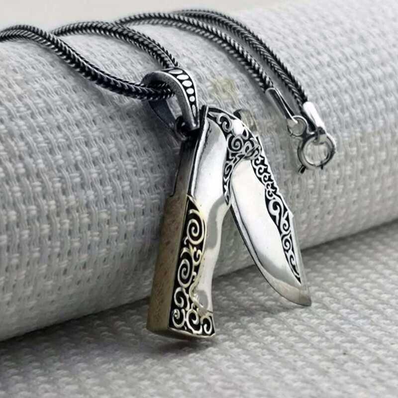A hunting knife is a sharp and durable knife specially designed for hunters. One of the most important equipment in hunting is the hunting knife. A hunting knife is the hunter's best friend. A hunting knife is useful for many purposes such as skinning a game animal, cutting its meat, separating its bones, starting a fire, and cutting rope. This necklace is made of 925 sterling silver. Oxide coating is applied to silver. Silver necklace models with oxide coating preserve their shine for a long time and oxidation is delayed. This hunting knife necklace is also handmade like other silver necklace models. There may be a ± 10% deviation in the specified product weight due to silver and precious stones.