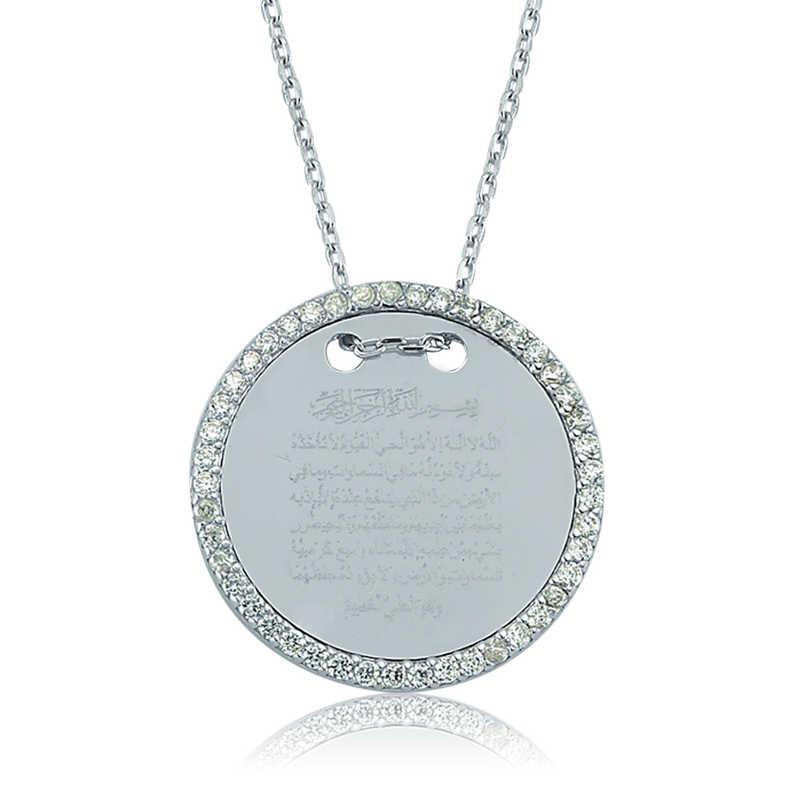 Ayetel Kursi is the 255th verse of the 2nd Sura, Surah Al-Baqarah, in the Quran. In other words, Ayetel Kursi is a verse in the Quran. It takes its name from the word "kursiyuhus semeveti" in the verse. This prayer can be read after the Fatiha in prayer or for the purpose of glorifying Allah or praying. The Virtue of Ayetel Kursi; Allah, there is no god but He. He is the Ever-Living, the Self-Subsisting. Neither sleep nor slumber comes to Him. To Him belongs everything in the heavens and the earth. Who can intercede with Him except with His permission? He knows what His servants do and what they will do. (Nothing is hidden from Him.) People cannot fully know of His knowledge except what He has informed them. His platform includes the heavens and the earth, and it is not difficult for Him to protect and watch over them. He is the Almighty, the Great. Ayetel Kürsi Women's Necklace model is made of 925 sterling silver. Rhodium plating is applied on silver. Silver women's necklace models with rhodium plating preserve their shine for a long time and oxidation is delayed. The average silver chain length is 45 cm. Like the silver Ayetel Kürsi plate women's necklace model, all silver women's necklace models are also produced by hand. There may be a ± 10% deviation in the average product weight specified due to silver and precious stones.