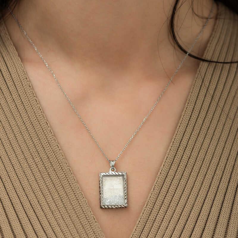 Silver Necklace with Fatiha and Esma'ul Husna Written Esmaül Husna is the name given to the ninety-nine names of Allah,...