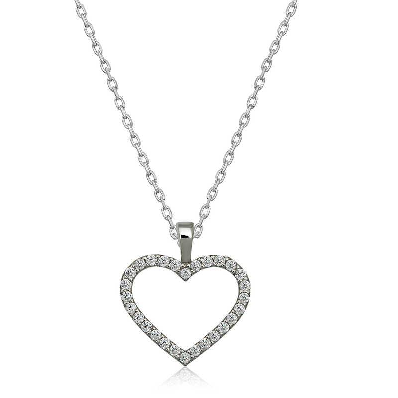 This wonderful design heart necklace model, which has a heart pattern with stones, is made of 925 sterling silver. Necklaces with heart designs evoke love. Therefore, a silver heart necklace can also be a nice gift option. Zircon stones are used on this necklace. Rhodium plating is applied to the silver to delay oxidation and preserve its shine for a long time. The average length of the chain, which is completely silver, is 45 cm. This women's heart necklace model is handmade, as are other silver women's heart necklace models. There may be a ± 10% deviation in the specified average product weight due to silver and precious stones.