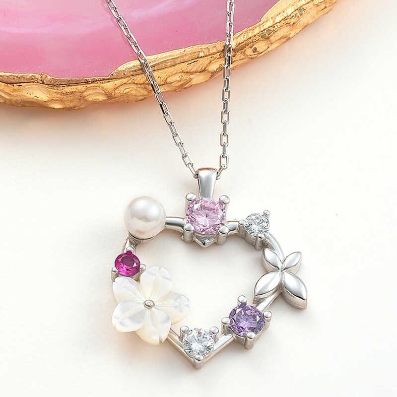 Silver Heart Magnolia Flower Butterfly Women's Necklace