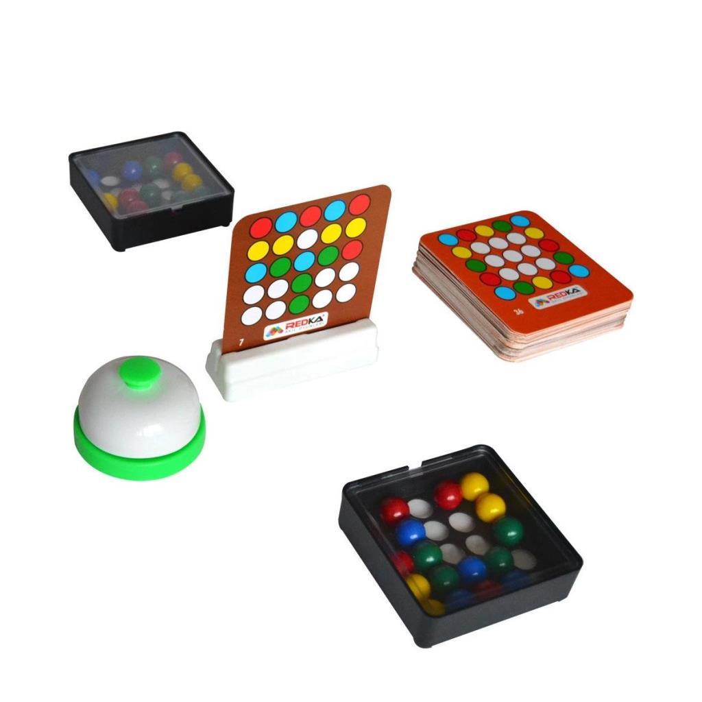Jeu des doigts habiles ; Il se compose de 60 cartes de tâches, 1 porte-cartes, 2 plateformes de jeu et 1 cloche.
