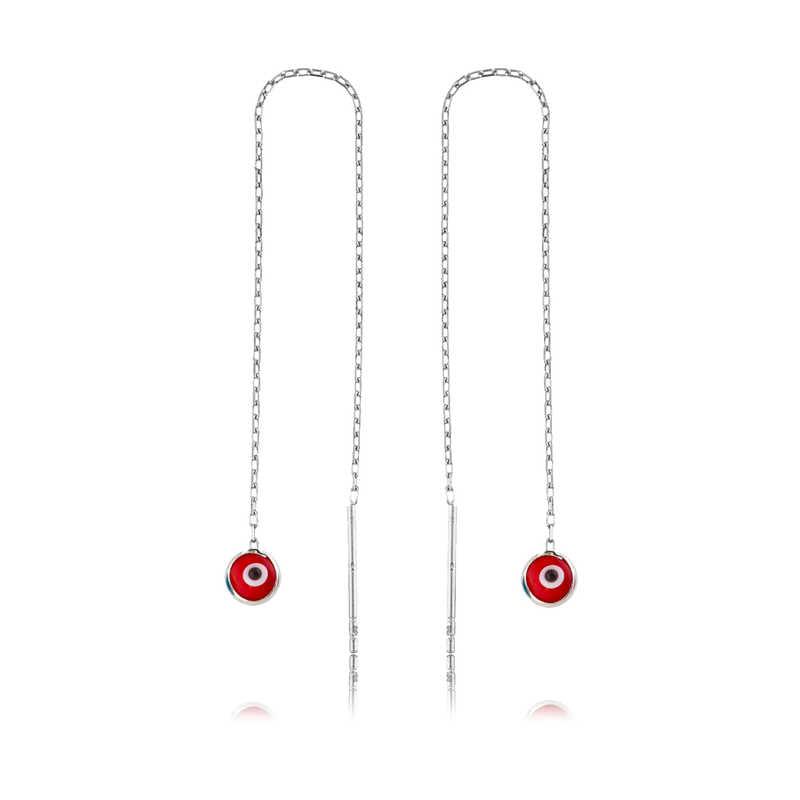Boucle d'oreille mauvais œil rouge avec chaîne en argent