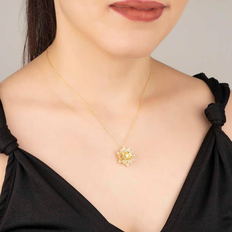 La fleur de lotus est l'une des plus belles fleurs qui symbolise la spiritualité, la spiritualité et la propreté. La fleur de lotus, qui fleurit dans les eaux polluées de la forêt tropicale, est devenue un symbole de croyances telles que le bouddhisme et l'hindouisme grâce à sa beauté et sa pureté. Cependant, dans de nombreuses civilisations anciennes, la fleur de lotus est considérée comme sacrée. Un autre détail qui rend la fleur de lotus spéciale est la région où pousse la fleur. La fleur de lotus, qui pousse particulièrement dans des zones telles que les marécages et les terres boueuses, peut rester propre malgré l'environnement sale dans lequel elle pousse. La fleur de lotus, qui peut nettoyer même une seule particule de poussière qui atterrit sur elle, accueille ceux qui la rencontrent avec une beauté claire. Vous pouvez également offrir un cadeau à vos proches ou vous récompenser avec le collier fleur de lotus en argent, or et pierre blanche, considéré comme sacré dans différentes cultures. Ce collier élégant, l'une des couleurs les plus appréciées de cette année ; C'est une option parfaite pour un cadeau d'anniversaire, la Saint-Valentin ou des occasions spéciales. Collier; Il est fabriqué en argent sterling 925. Plaqué or sur argent. Comme les autres colliers, le collier femme fleur de lotus en argent or pierre blanche est également fait à la main. En raison de l'argent et des pierres précieuses, il peut y avoir un écart de ± 10 % dans le poids moyen indiqué du produit.