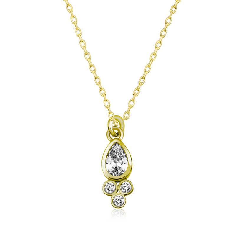 Collier pour femme en argent et or avec pierre unique en forme de goutte de rosée