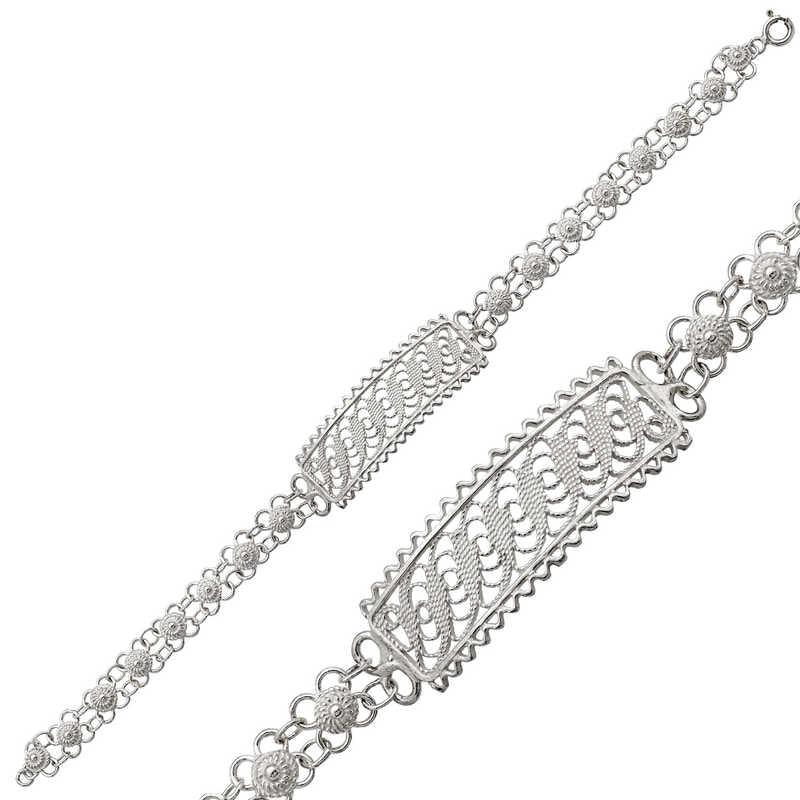 Ce modèle de bracelet pour femme en filigrane Beypazarı spécialement conçu est fabriqué en argent sterling 925. Le modèle de bracelet, également connu sous le nom de filigrane de coriandre, est préparé à la main en enroulant des fils d'argent. La longueur du bracelet est de 19 cm. Vous pouvez offrir le bracelet en filigrane d'argent Beypazarı à votre amoureux ou à tous vos proches pour votre anniversaire, votre anniversaire, le réveillon du Nouvel An et la Saint-Valentin. En raison de l'argent et des pierres précieuses, il peut y avoir un écart de ± 10 % dans le poids moyen indiqué du produit.