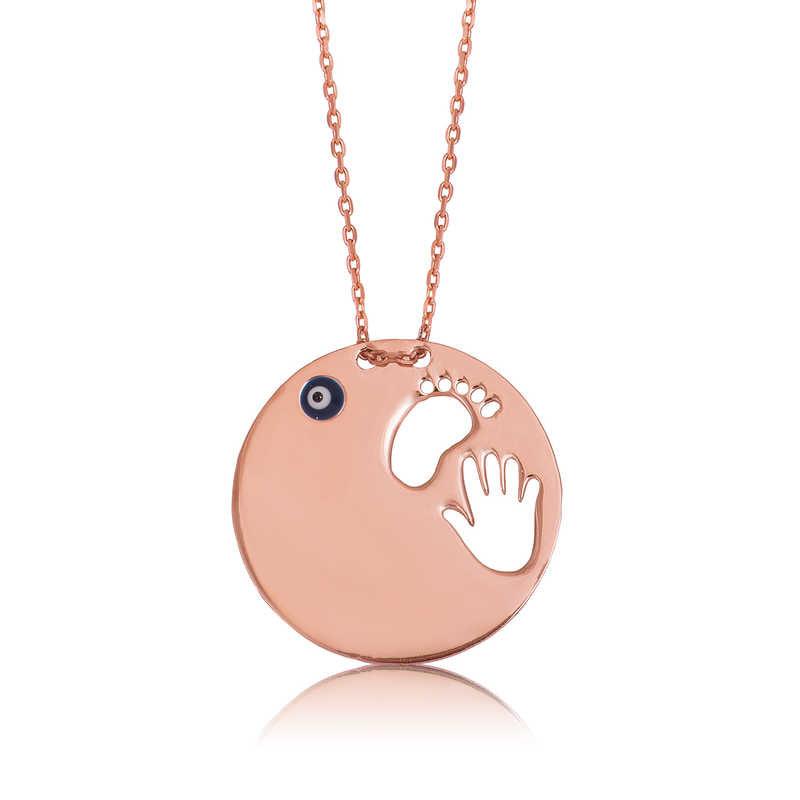Le collier main et empreinte, symbolisant l'innocence et la pureté, sera l'un des cadeaux les plus significatifs pour votre mère, votre être le plus précieux dans la vie. Le collier empreinte de main mère est fait en argent sterling 925. Le placage rose est réalisé sur de l'argent. Les modèles de colliers pour femmes en argent plaqué rose conservent leur éclat pendant longtemps. Si vous le souhaitez, un nom et une date peuvent être inscrits sur le collier. La perle du mauvais œil sur le collier est réalisée avec la méthode de l'émail à froid. La longueur moyenne de la chaîne en argent est de 45 cm. Le modèle de collier empreinte de main en argent pour mère est fabriqué à la main, comme tous les autres modèles de colliers pour femmes en argent. En raison de l'argent et des pierres précieuses, il peut y avoir un écart de ± 10 % dans le poids du produit spécifié.