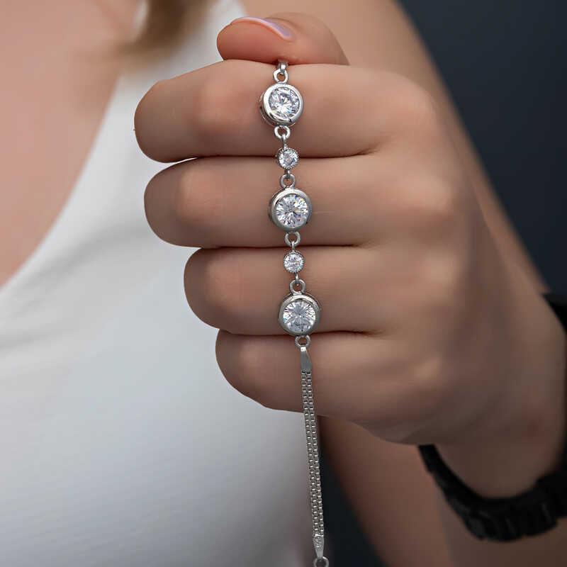 Les modèles de bracelets qui vous sont proposés dans une large gamme allant des motifs traditionnels et flashy aux designs simples parviennent à attirer l'appréciation des femmes de tous les styles. Vous pouvez avoir des modèles de poignet qui vous donneront une apparence élégante et en même temps stylée et se démarqueront dans n'importe quel environnement qui convient à votre style classique ou sportif. En examinant les modèles de bracelets qui vous sont proposés avec une large gamme de modèles, vous pourrez avoir des bijoux en argent que vous pourrez utiliser longtemps. Nos modèles de bracelets que vous pourrez offrir en cadeau à vos proches lors d'occasions spéciales vous attendent. Le bracelet pour femme en pierre ovale en argent est fabriqué en argent sterling 925. Ce bracelet est plaqué rhodium. Les produits plaqués rhodium conservent leur éclat pendant longtemps et transforment l'argent en couleur rhodium. Les pierres du bracelet sont en zircon. Comme tous les modèles de bracelets pour femmes en argent, le modèle de bracelet pour femmes en pierre ovale en argent est également fabriqué à la main. En raison de l'argent et des pierres précieuses, il peut y avoir un écart de ± 10 % dans le poids moyen indiqué du produit.