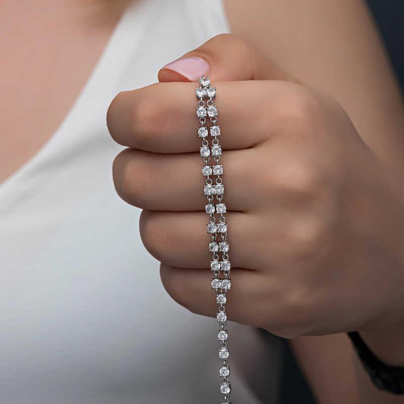 Les bracelets en argent, qui font partie des accessoires préférés des occasions spéciales et également à porter au quotidien, vous accueillent avec leurs designs uniques. En examinant les modèles de bracelets qui vous offrent les moyens les plus élégants de souligner votre style et de le refléter à l'extérieur, vous pouvez avoir des modèles de bracelets que vous pouvez utiliser à tout moment de la journée. Le bracelet pour femme en pierre de zircon argenté fait également partie de ces bracelets. Le bracelet à double rangée avec pierres de zircon que vous pouvez utiliser lors de vos occasions quotidiennes et spéciales est en argent sterling 925. Plaqué rhodium sur argent. Les produits en argent rhodié conservent longtemps leur éclat. Comme tous les bracelets en argent, le modèle de bracelet femme en pierre zircon argentée est également fabriqué à la main. En raison de l'argent et des pierres précieuses, il peut y avoir un écart de ± 10 % dans le poids du produit spécifié.