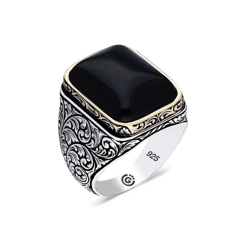 Ce modèle de bague pour homme, réalisé en pierre Zircon Noir à Motifs sur argent, est un accessoire élégant que vous pourrez utiliser à tout moment de la journée. Cette bague; Vous pouvez l'offrir en cadeau à vous-même ou à vos proches à l'occasion de leur anniversaire, de la fête des pères ou de journées spéciales. Le modèle de bague pour homme en pierre noire est fabriqué en argent sterling 925. Le revêtement d'oxyde est réalisé sur l'argent. Les modèles de bagues pour hommes en argent oxydé conservent leur éclat pendant longtemps. Comme toutes les bagues pour hommes, le modèle de bague pour homme Silver Patterned Black Zircon Stone Square est également fabriqué à la main. En raison de l'argent et des pierres précieuses, il peut y avoir un écart de ±10 % dans le poids moyen indiqué du produit.