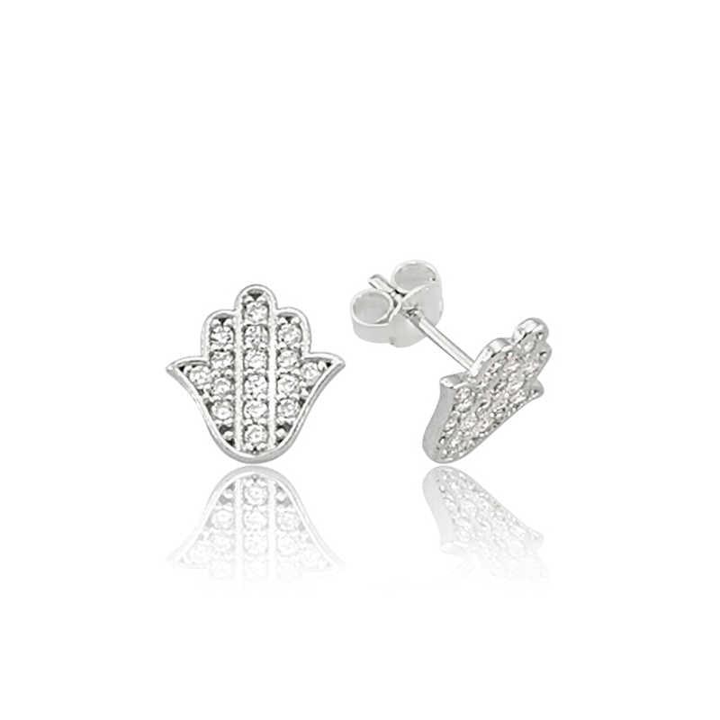 Boucle d'oreille cloutée en argent avec main de Fatima