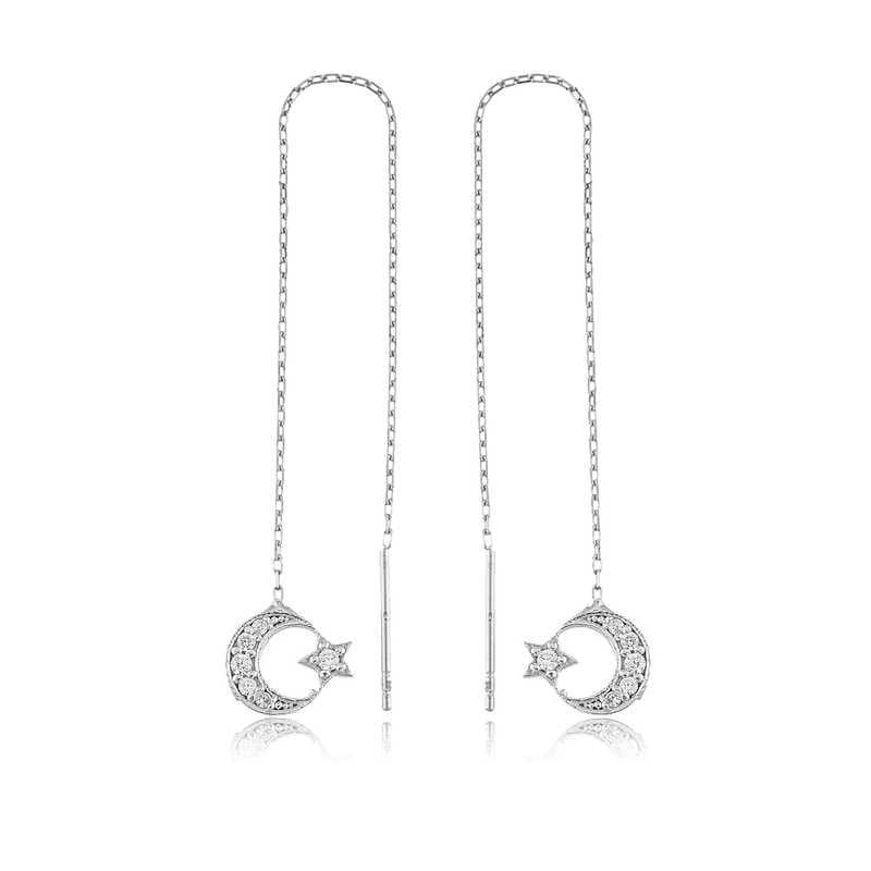Nous savons que le drapeau turc a été inspiré par la lune et l’étoile reflétées dans la mare de sang. Nous vous offrons une opportunité incontournable de porter la signification sacrée du drapeau et de la partager avec vos proches. Cette boucle d'oreille élégante ; C'est une option très élégante que vous pouvez choisir lors d'occasions spéciales comme cadeau d'anniversaire, cadeau de Saint-Valentin ou cadeau pour les mères. Ce modèle de boucle d'oreille en forme d'étoile en croissant enchaînée est fabriqué en argent sterling 925. Plaqué rhodium sur argent. Les boucles d'oreilles en argent avec placage rhodium conservent longtemps leur éclat et l'oxydation est retardée. Les pierres dessus sont en zircon. Comme toutes les boucles d'oreilles en argent pour femmes, le modèle de boucle d'oreille pour femme en forme d'étoile en croissant avec chaîne en argent est également fabriqué à la main. En raison de l'argent et des pierres précieuses, il peut y avoir un écart de ± 10 % dans le poids moyen indiqué du produit.