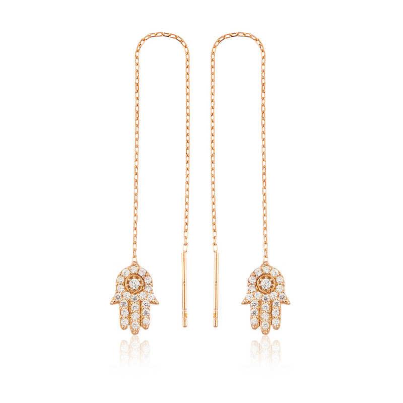 Bien que Hz. Bien qu'elle soit connue sous le nom de main de Fatima, elle est appelée « hamse » en arabe. Hamse signifie cinq et indique le nombre de doigts d'une main. Hazrat. Un jour, alors que Fatma faisait griller du halva dans la cuisine, son mari Hz. Ali le voit et plonge sa main dans le halva en train de cuire, mais rien ne se passe, il continue à rôtir le halva comme ça. À partir de ce jour, on a cru que sa main était sacrée, puissante et pratiquement invincible. Toutes les difficultés seront surmontées par sa main. Cette boucle d'oreille unique ; C'est une option parfaite à choisir lors d'occasions spéciales comme cadeau d'anniversaire, cadeau de Saint-Valentin ou cadeau pour les mères. Ces magnifiques boucles d'oreilles en forme de main de Fatma pour femme ; Il est fabriqué en argent sterling 925. Le placage rose est réalisé sur de l'argent. Tous les modèles de boucles d'oreilles en argent plaqué or rose conservent longtemps leur éclat, transforment l'argent en couleur rose et retardent l'oxydation. Les pierres blanches sur les boucles d'oreilles sont en zircon. Comme toutes les boucles d'oreilles pour femmes en argent, les boucles d'oreilles pour femmes en chaîne main de Fatma sont également faites à la main. En raison de l'argent et des pierres précieuses, il peut y avoir un écart de ± 10 % dans le poids du produit spécifié.