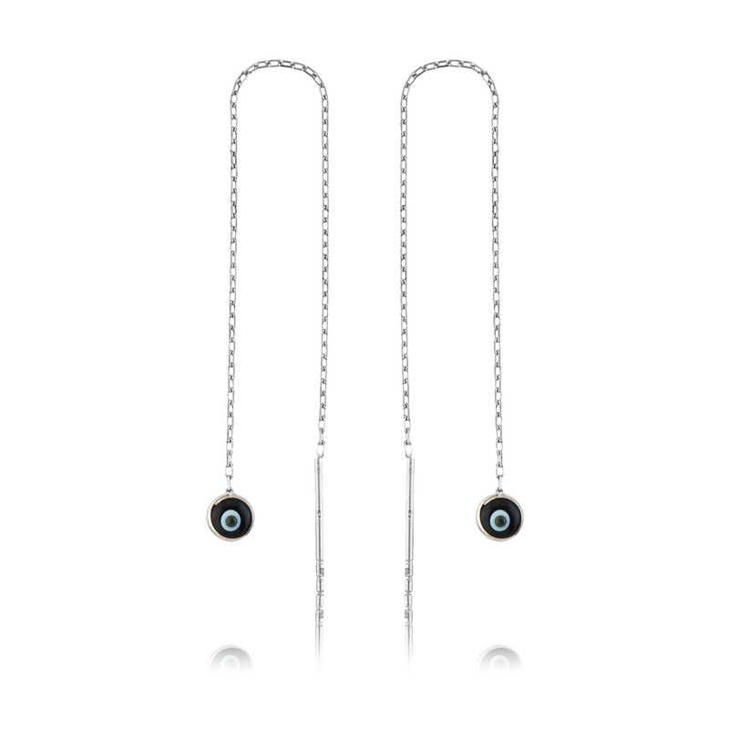 Les gens utilisent des perles contre le mauvais œil depuis de nombreuses années pour se protéger du mauvais œil. Les perles contre le mauvais œil sont une précaution contre les effets négatifs des mauvais regards sur les gens. C'est pourquoi les gens portent des perles contre le mauvais œil pour protéger leurs proches. Cette boucle d'oreille mauvais œil reflète l'élégance et le style. Ce modèle, apprécié à toutes les époques, ne fait aucun compromis sur son élégance ; Vous pouvez le choisir comme cadeau d'anniversaire, cadeau de Saint-Valentin ou cadeau pour les mères lors d'occasions spéciales. Les boucles d'oreilles pour femmes bleu foncé avec chaîne sont fabriquées en argent sterling 925. Boucles d'oreilles en argent plaqué rhodium. Les boucles d'oreilles pour femmes en argent rhodié conservent longtemps leur éclat et l'oxydation est retardée. Les pierres dessus sont en verre. Comme toutes les boucles d'oreilles pour femmes en argent, cette boucle d'oreille pour femme en chaîne en argent noir mauvais œil est également entièrement faite à la main. En raison de l'argent et des pierres précieuses, il peut y avoir un écart de ± 10 % dans le poids moyen indiqué du produit.