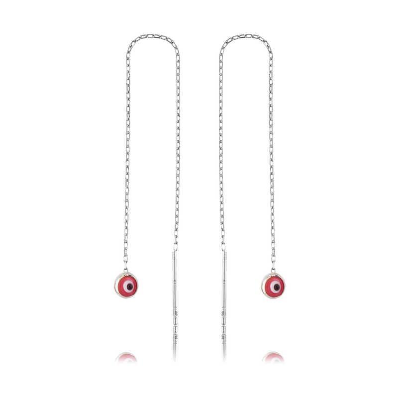 Boucle d'oreille mauvais œil rose avec chaîne en argent