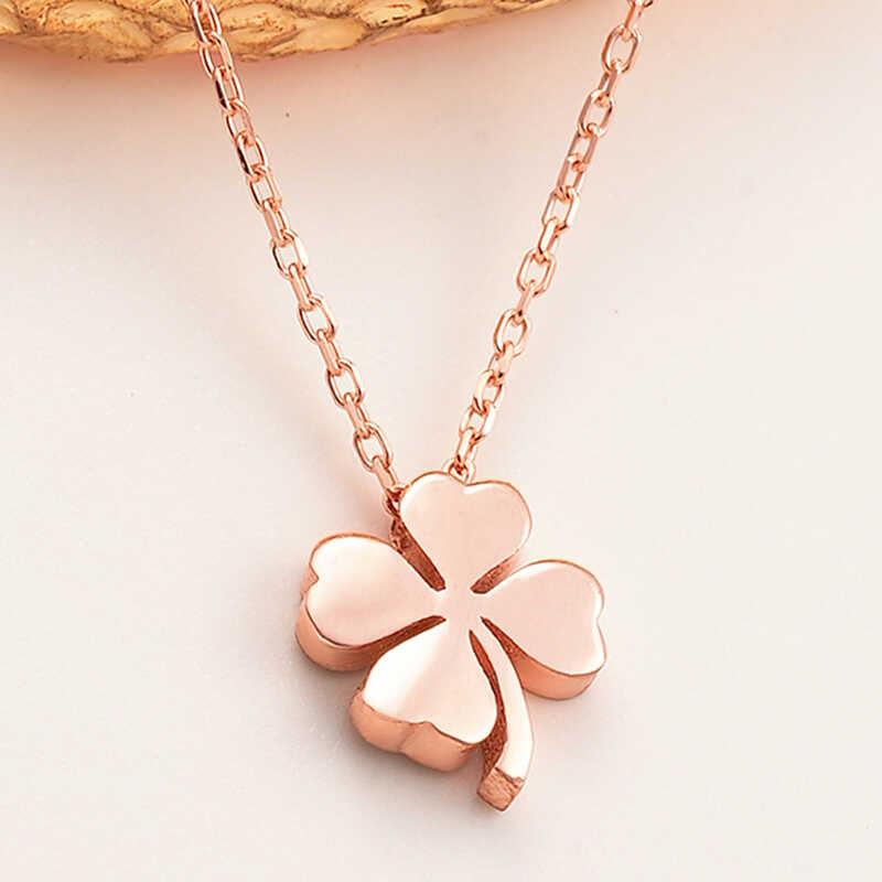 Collier femme trèfle à quatre feuilles en argent rose Le trèfle à quatre feuilles est considéré comme un symbole de...