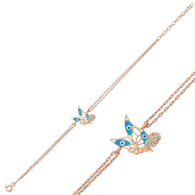Icône de papillon; Il porte la valeur d’un amour propre et pur, la renaissance de sentiments de paix, de bonheur, de jeunesse et de romantisme. Modèles papillon qui offrent une apparence extrêmement élégante et sont généralement utilisés par les femmes dans les colliers et les bracelets ; Il occupe une place populaire dans le monde de la joaillerie grecque et extrême-orientale et représente la maturation du corps. Psychologiquement, les motifs papillon sont décrits comme le changement et le renouvellement de l'âme. Ce bracelet élégant ; C'est une option parfaite pour un cadeau d'anniversaire, la Saint-Valentin ou des occasions spéciales. Le bracelet est en argent sterling 925. Le placage rose est réalisé sur de l'argent. Les bracelets pour femmes plaqués rose conservent longtemps leur éclat et retardent l'oxydation. Comme tous les bracelets en argent, le bracelet papillon en argent est également fait à la main. Les pierres dessus sont en zircon. En raison de l'argent et des pierres précieuses, il peut y avoir un écart de ± 10 % dans le poids du produit spécifié.
