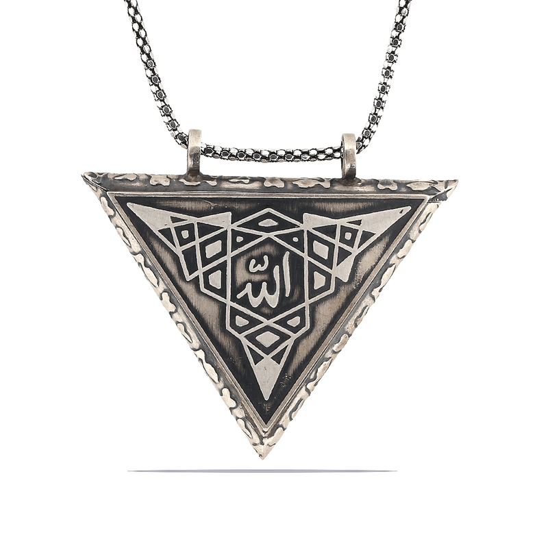 Collier amulette Allah ouvrable en forme de triangle argenté