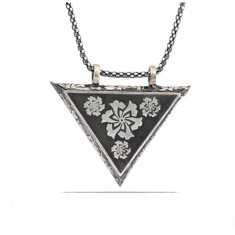 Collier amulette en forme de fleur triangulaire ouvrable en argent