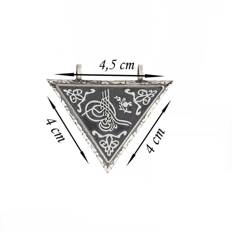 Collier amulette Tughra ouvrable en forme de triangle argenté