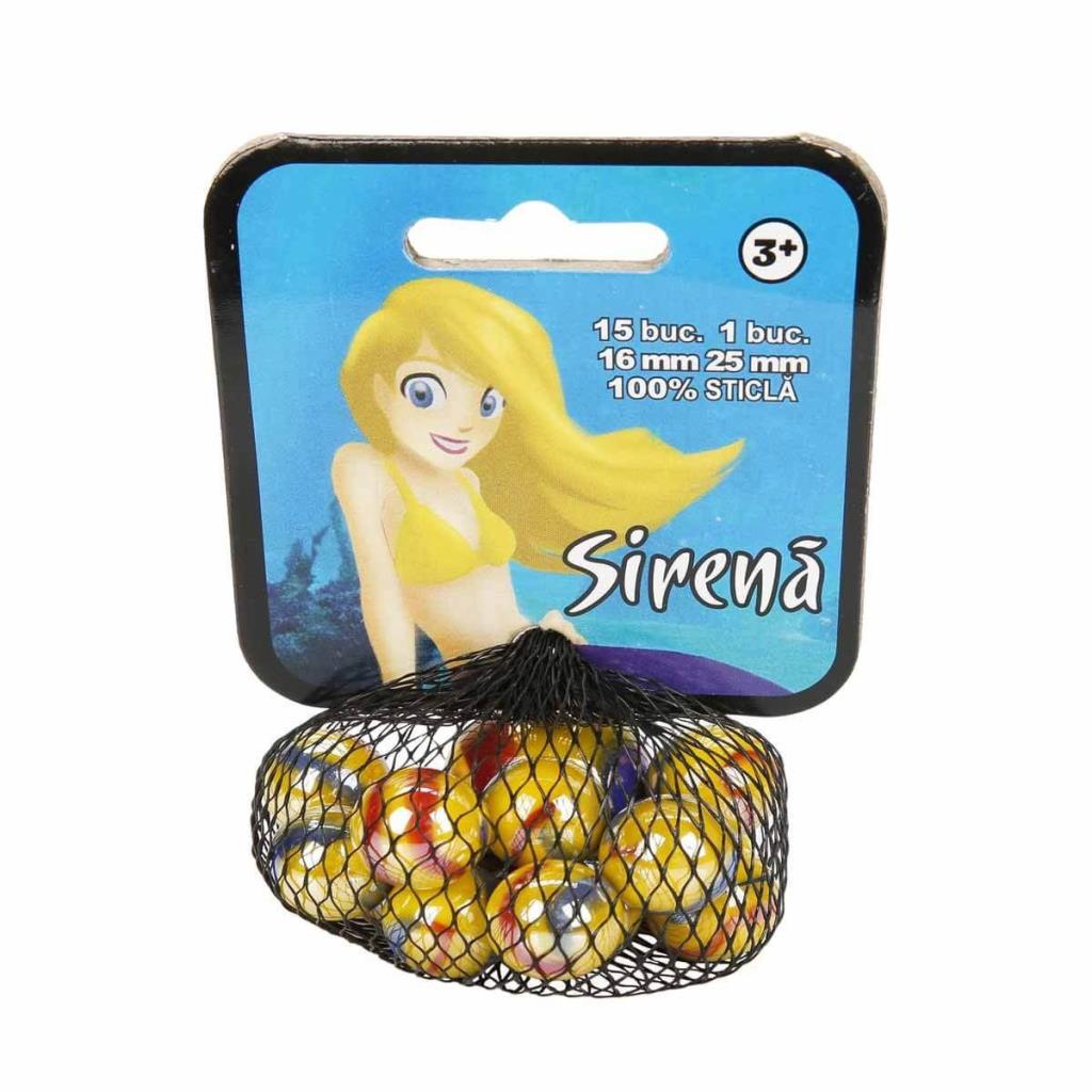 Dans le filet; Il y a un total de 16 billes de verre, 15 de taille normale et 1 de grande taille.