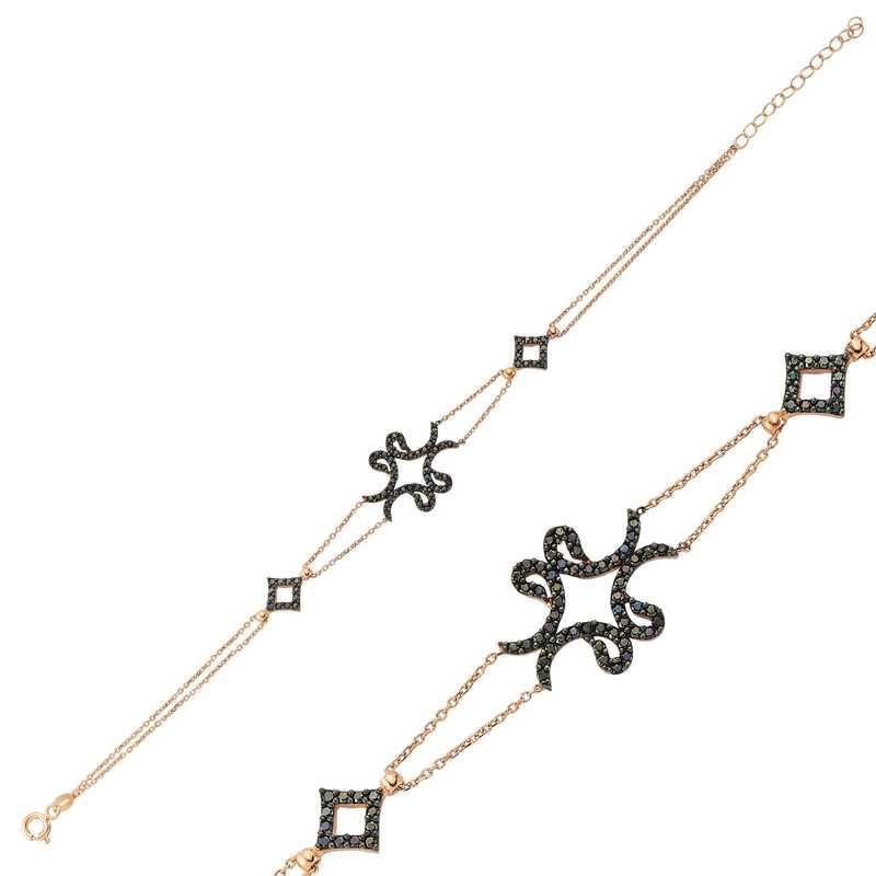 Ce bracelet pour femme parfaitement conçu avec un motif wow est fabriqué en argent sterling 925. Plaqué or rose sur argent. Tous les modèles de bracelets pour femmes plaqués or rose conservent longtemps leur éclat et l'oxydation est retardée. Les pierres de ce bracelet femme en argent à quatre vavs sont en zircon. Il y a une chaîne d'extension qui permet d'ajuster la longueur du bracelet en fonction de l'épaisseur du poignet. Il peut atteindre jusqu'à 20 cm. Tous les modèles de bracelets pour femmes sont fabriqués à la main. En raison de l'argent et des pierres précieuses, il peut y avoir un écart de ± 10 % dans le poids moyen indiqué du produit.