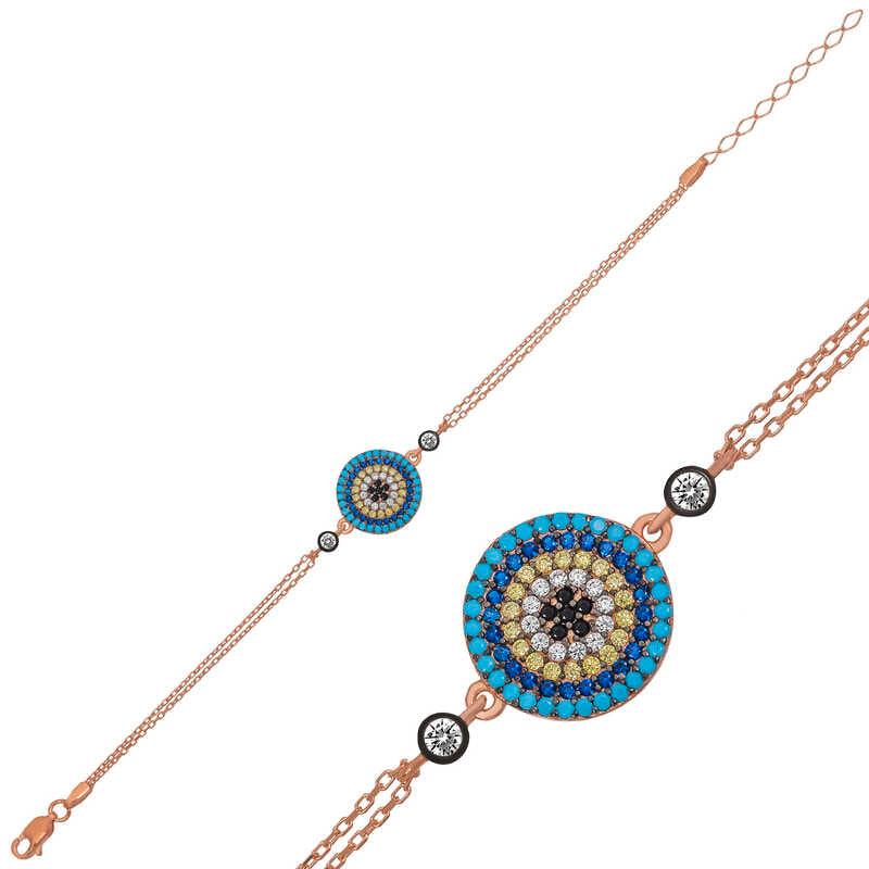 Les gens utilisent des perles contre le mauvais œil depuis de nombreuses années pour se protéger du mauvais œil. Les perles contre le mauvais œil sont une précaution contre les effets négatifs des mauvais regards sur les gens. C'est pourquoi les gens portent des perles contre le mauvais œil pour protéger leurs proches. Ce bracelet contre le mauvais œil reflète l'élégance et le style. Ce modèle, apprécié à toutes les époques, ne fait aucun compromis sur son élégance ; Vous pouvez le choisir comme cadeau d'anniversaire, cadeau de Saint-Valentin ou cadeau pour les mères lors d'occasions spéciales. Le bracelet pour femme en argent contre le mauvais œil est fabriqué en argent sterling 925. Le placage rose est réalisé sur de l'argent. Les bracelets pour femmes en argent plaqué rose conservent longtemps leur éclat, transforment l'argent en couleur rose et retardent l'oxydation. Les pierres dessus sont en zircon. Comme tous les bracelets femme en argent, ce modèle de bracelet femme mauvais œil en argent est également réalisé entièrement à la main. En raison de l'argent et des pierres précieuses, il peut y avoir un écart de ± 10 % dans le poids moyen indiqué du produit.