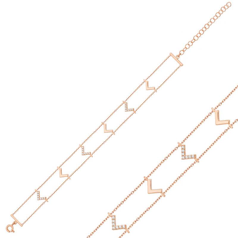 Une option idéale pour les femmes qui aiment un look élégant et fantaisie. Dans les collections; Pour les femmes qui recherchent l'ostentation et l'élégance, le bracelet double chaîne composé de symboles V avec et sans pierres vous attend avec un modèle adapté à tous les goûts et concepts. Ce modèle de bracelet élégant est fabriqué en argent sterling 925. Plaqué or rose sur argent. Les modèles de bracelets en argent plaqué or rose conservent longtemps leur éclat, transforment la couleur argent en rose et retardent l'oxydation. Les pierres dessus sont en zircon. Comme tous les modèles de bracelets pour femmes en argent, le modèle de bracelet pour femmes en argent v est également fabriqué à la main. En raison de l'argent et des pierres précieuses, il peut y avoir un écart de ± 10 % dans le poids moyen indiqué du produit.