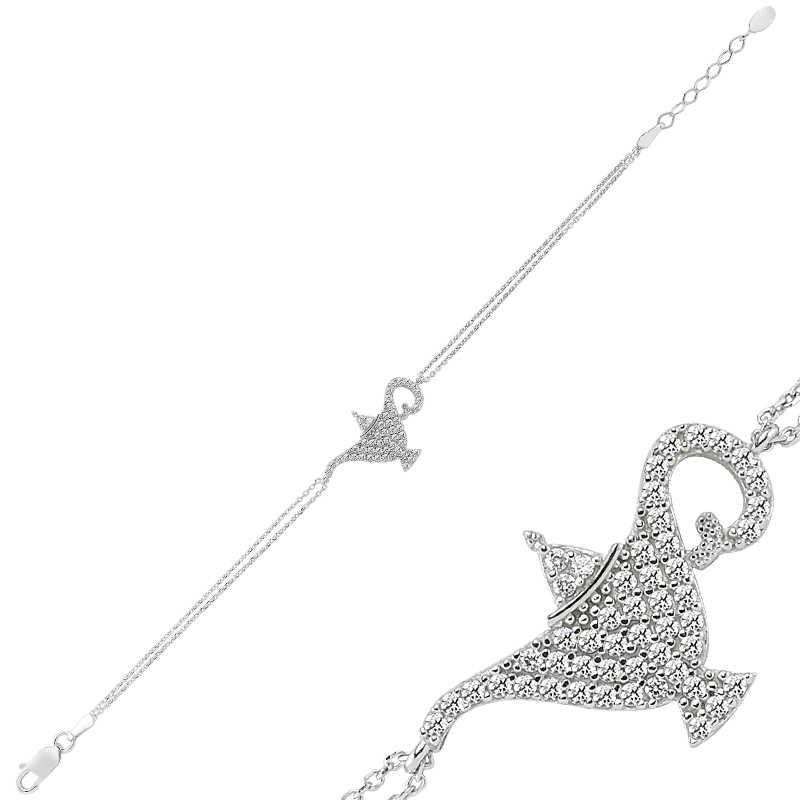 Ce modèle en forme de lampe est un modèle de bracelet en argent que vous pourrez apprécier. Avec ce bracelet lampe magique en argent spécialement conçu que vous offrirez à votre amoureux en cadeau, vous pourrez lui exprimer votre amour et votre affection éternels et lui transmettre le message que vous serez ensemble pour toujours. Fabriqué en argent sterling 925, les pierres blanches de ce bracelet élégant pour femme sont en zircon. Si vous le souhaitez, faites plaisir à vous-même ou à vos proches avec le bracelet lampe magique élégant et étincelant. Le bracelet peut être rallongé jusqu'à 21 cm grâce à la chaîne d'extension. Le bracelet femme lampe magique en argent est plaqué rhodium. Tous les modèles de bracelets pour femmes en argent rhodié conservent longtemps leur éclat. Comme tous nos modèles de bracelets femme en argent, le bracelet femme lampe magique en argent est également réalisé à la main. En raison de l'argent et des pierres précieuses, il peut y avoir un écart de ± 10 % dans le poids du produit spécifié.