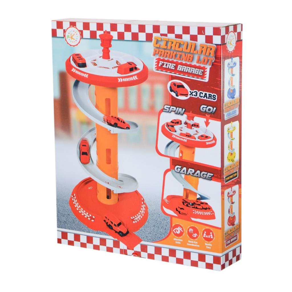 Dönen İtfaiye Garaj Oyun SetiGarajın en üst beyaz park yeri dönmektedir. Sırası gelen araç inişe hazırlansın!İçerisinde 3 adet araç bulunmaktadır.Plastik...
