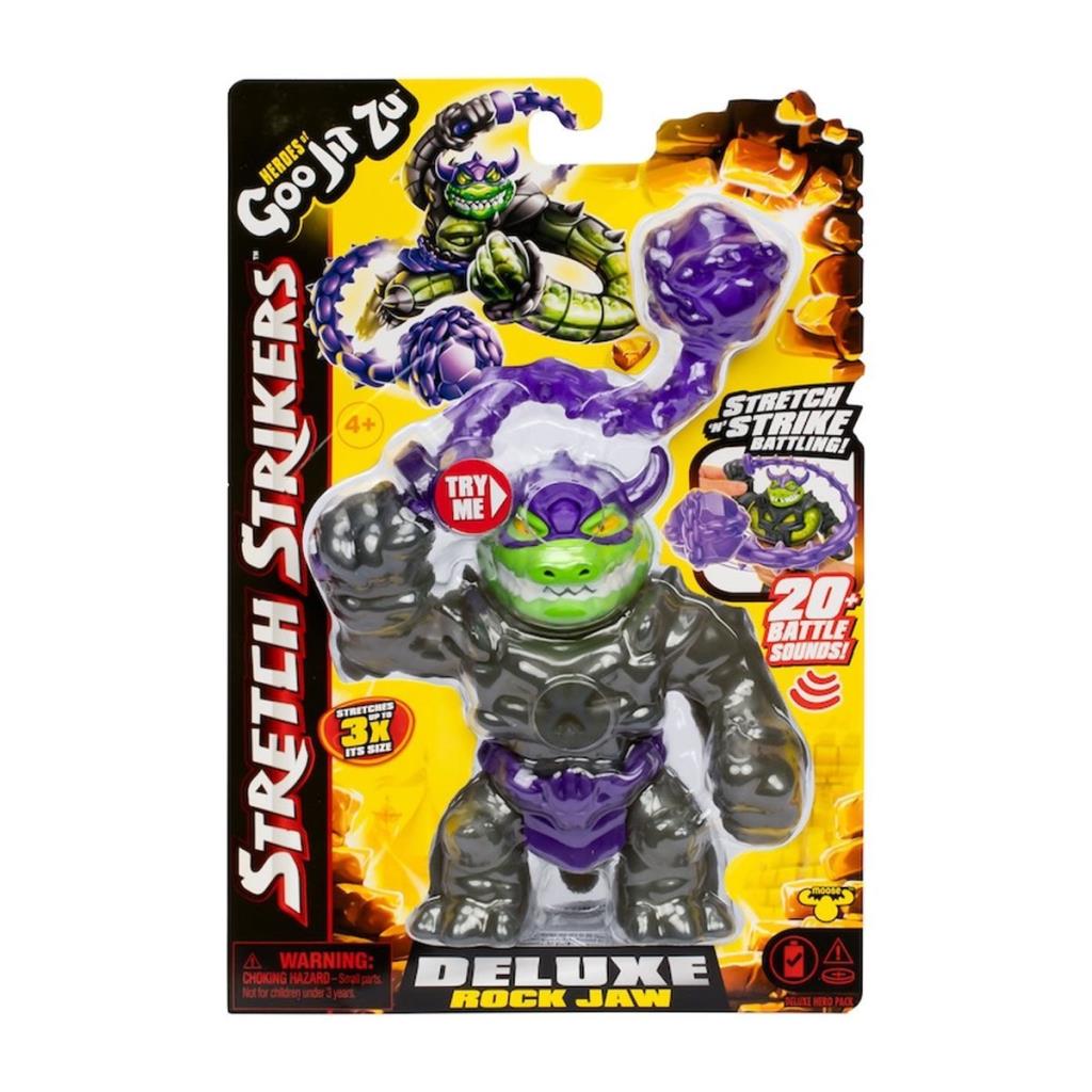Goojitzu Stretch Strikers koleksiyonu çok özel Delüks Figürlerle de çocukları bekliyor! Blazagon ve Thrash olmak üzere 2 asortiden oluşan Delüks Figürler kendi büyüklüklerinin tam 3 katına kadar esneyebiliyorlar, kutuda gelen müthiş aksesuarlarıyla kapışmalara girebiliyorlar ve 20’den fazla kapışma sesine sahipler!