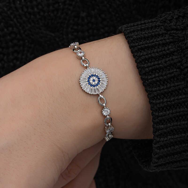 Gümüş Baget Taşlı Nazar Kadın Bileklik