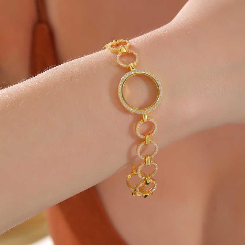 Gümüş Çeyrek Takılabilen Altın Kaplama Kadın Bileklik