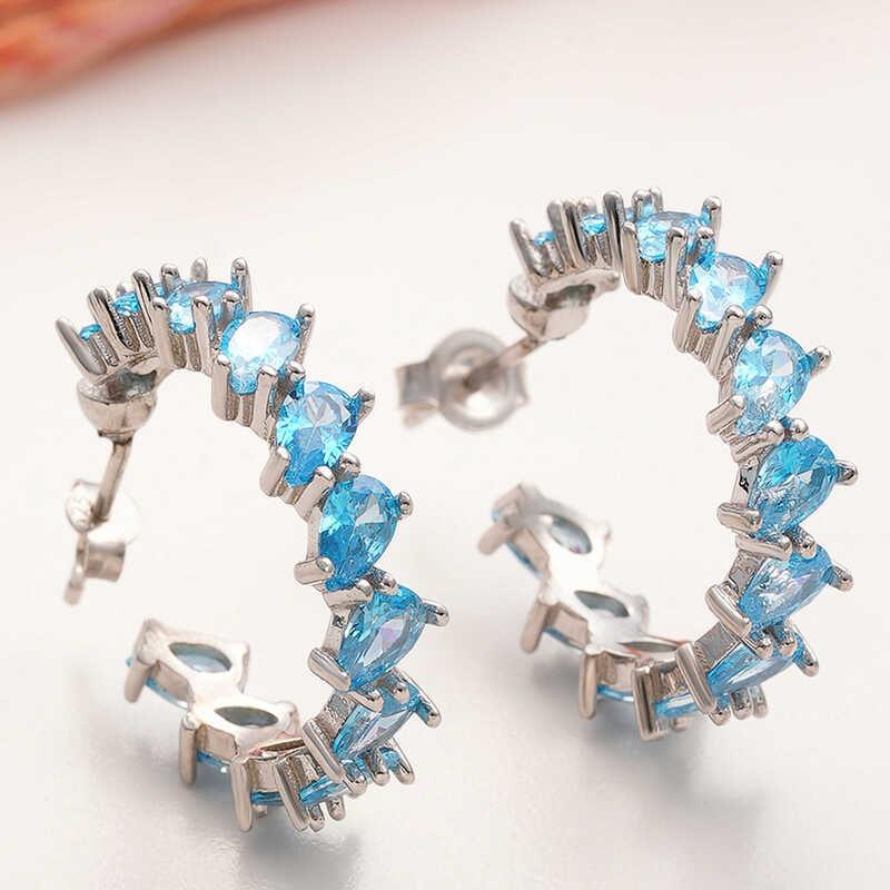Gümüş Akuamarin Taşlı Damla Çivili Kadın Küpe