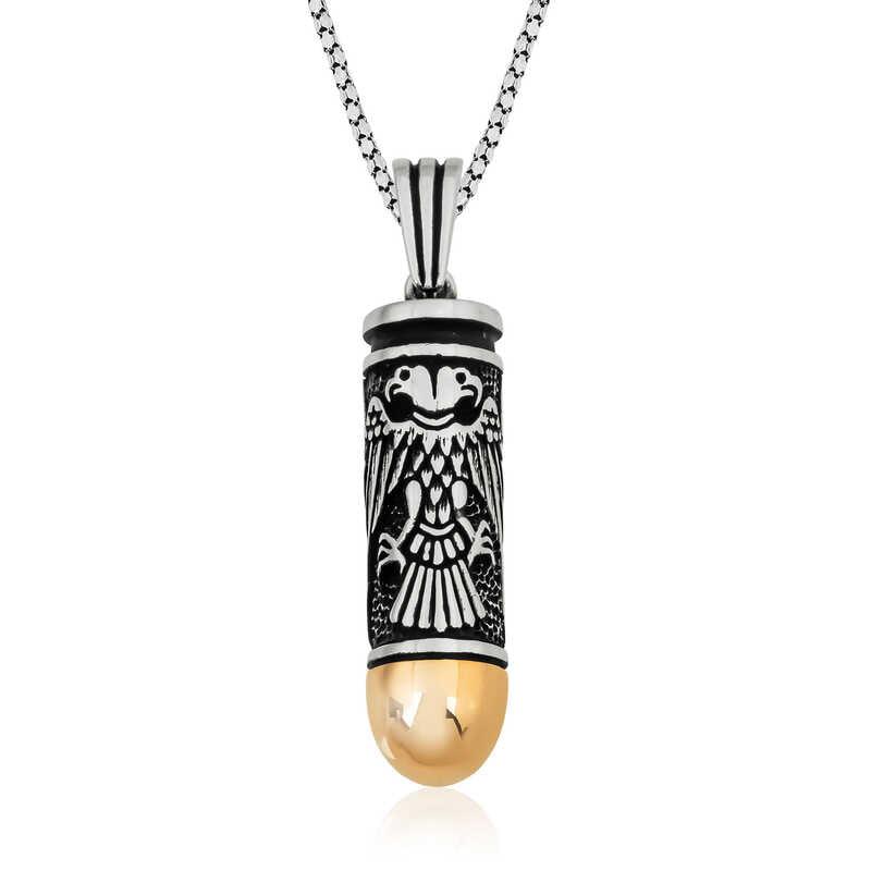 Siz de trendlerin gerisinde kalmaktan hoşlanmıyorsanız Kurşun Kolye sizin için doğru bir seçim olacaktır. Tarihimizden arda kalan en önemli savaş aletlerinden olan kurşun mistik havasıyla sizler için tasarlandı. Bu şık kolye; doğum günü hediyesi, babalar günü veya özel günlerde tercih edilebilecek mükemmel bir seçenektir. Kolye; 925 ayar gümüşten imal edilmiştir. Gümüş eskitme desen ve üzerine oksit kaplama yapılmıştır. Diğer kolyelerde olduğu gibi gümüş kurşun erkek kolye de el emeği ile üretilmiştir. Gümüş ve değerli taşlar nedeniyle belirtilen ortalama ürün ağırlığında ± %10 sapma olabilmektedir.