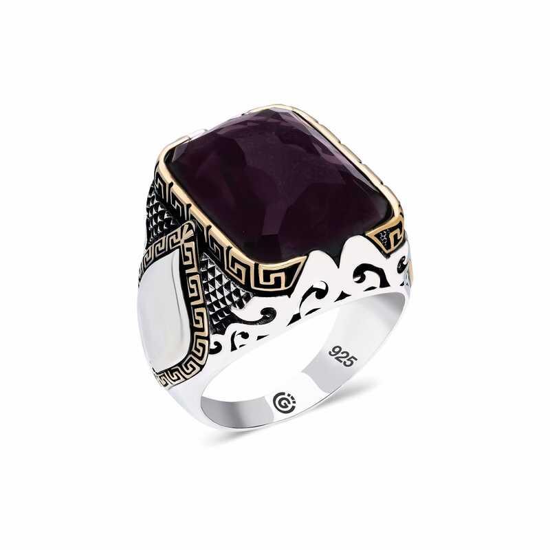 Gümüş Mor Taşlı Kare Erkek Yüzük