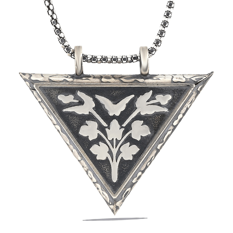 Gümüş Üçgen İçi Açılabilen Çiçek Muskalık Kolye
