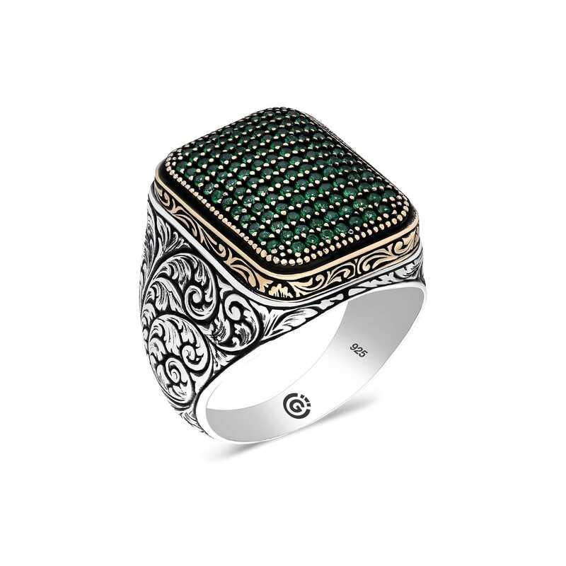 Gümüş Yeşil Zirkon Taşlı Kare Erkek Yüzük Gümüş üzerindeki zirkon yeşil taşlı taştan oluşan bu erkek yüzük modeli günün her anında...