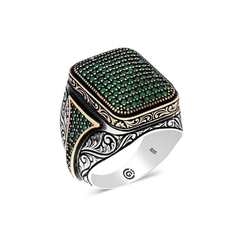 Gümüş Yeşil Zirkon Taşlı Kare Erkek Yüzük Gümüş üzerindeki zirkon yeşil taşlı taştan oluşan bu erkek yüzük modeli günün her anında...